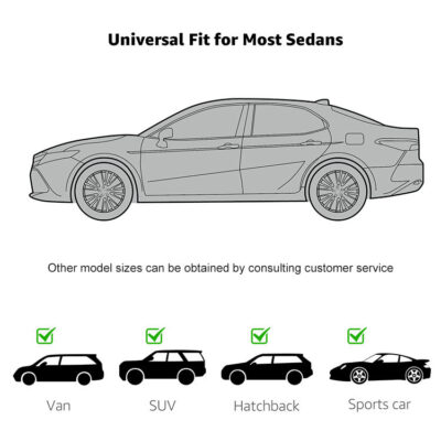 All-Season Protection: Reflective coating blocks heat in summer; waterproof material keeps your vehicle dry in rain or snow.